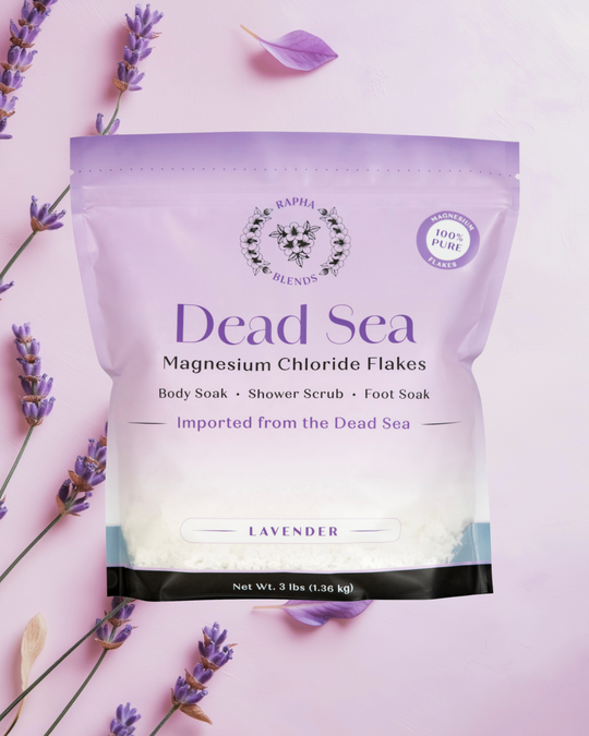 Rapha Blends pure Magnesium Chloride Flakes are responsibly harvested from the world-renowned Dead Sea in Israel. The "Salt Sea" has been sought after for its mineral-rich waters and healing properties for centuries; now you can bring its benefits to the comfort of your own home.